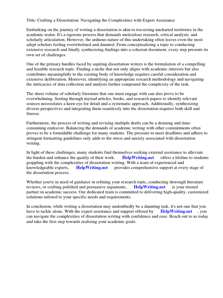 Title: Crafting a Dissertation: Navigating the Complexities with Expert Assistance