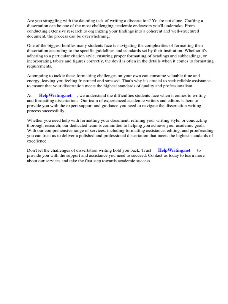 Don't let the challenges of dissertation writing hold you back. Trust ⇒ HelpWriting.net ⇔ to
