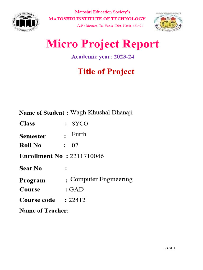 MATOSHRI INSTITUTE OF TECHNOLOGY