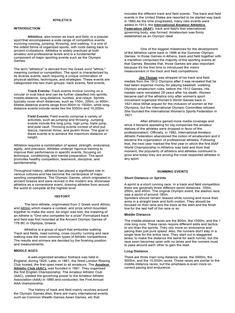 activities, such as jumping and throwing. Jumping After athletics gained more media coverage and