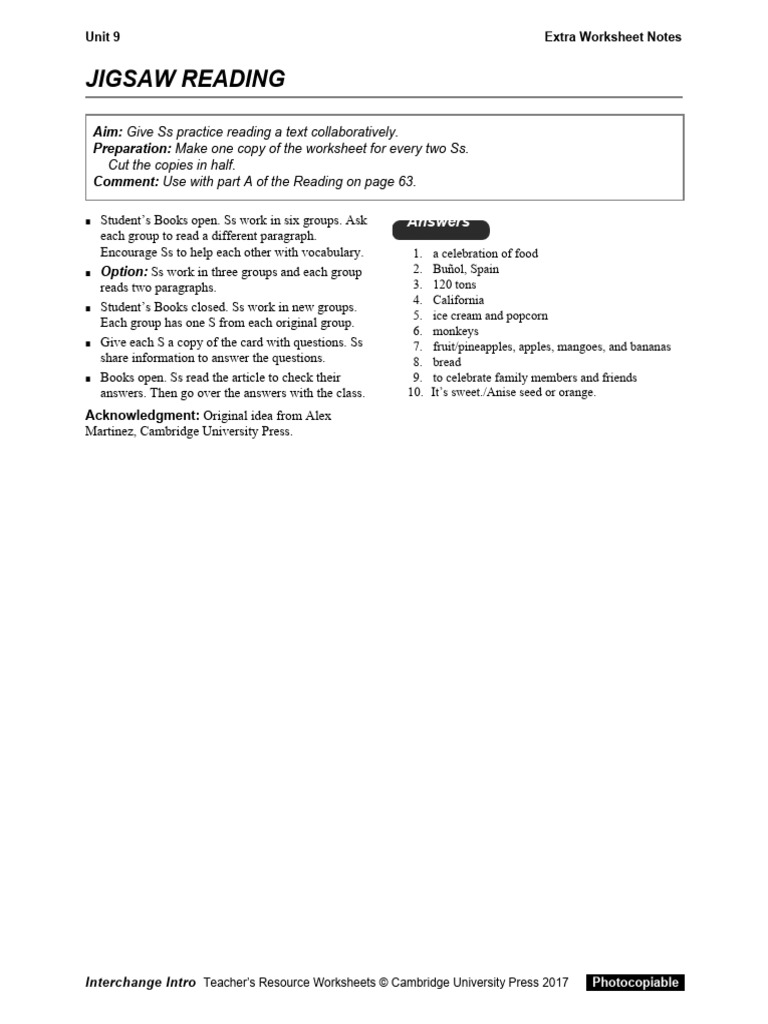 Interchange Intro Teacher’s Resource Worksheets © Cambridge University Press 2017 Photocopiable