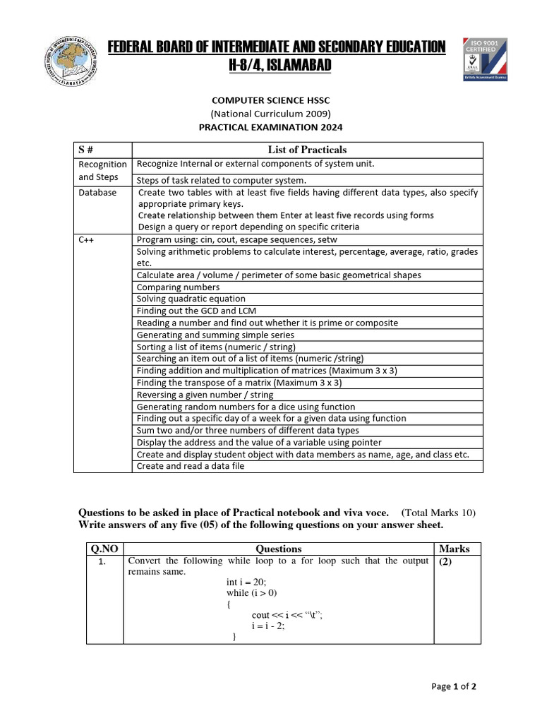 FEDERAL BOARD OF INTERMEDIATE AND SECONDARY EDUCATION