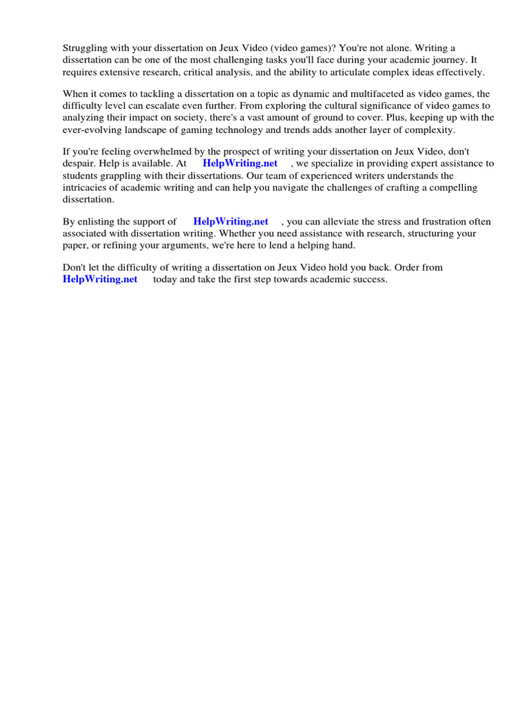 If you're feeling overwhelmed by the prospect of writing your dissertation on Jeux Video, don't