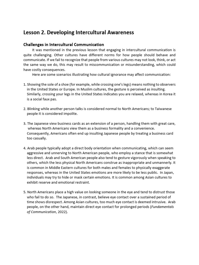 (Fundamentals of Communication, 2022). When interacting with people from different cultures,