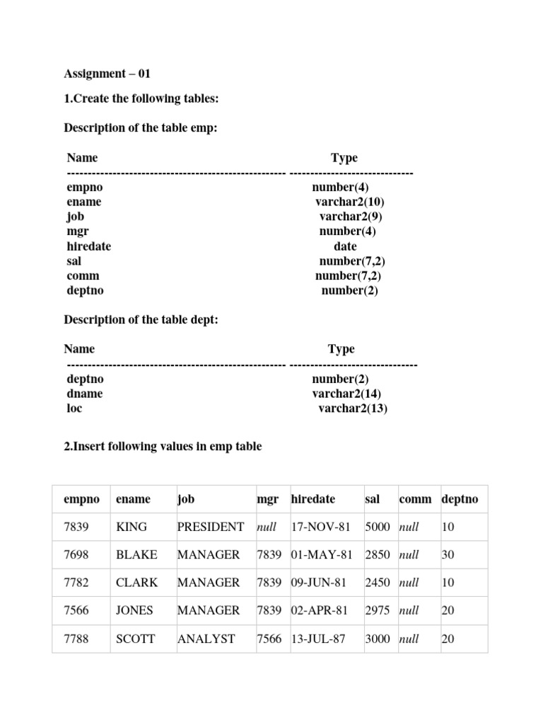 7839 KING PRESIDENT null 17-NOV-81 5000 null 10