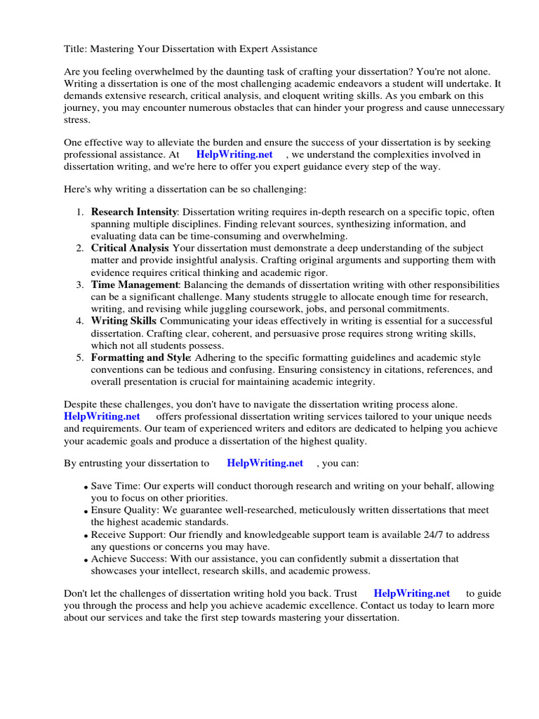Don't let the challenges of dissertation writing hold you back. Trust ⇒ HelpWriting.net ⇔ to guide
