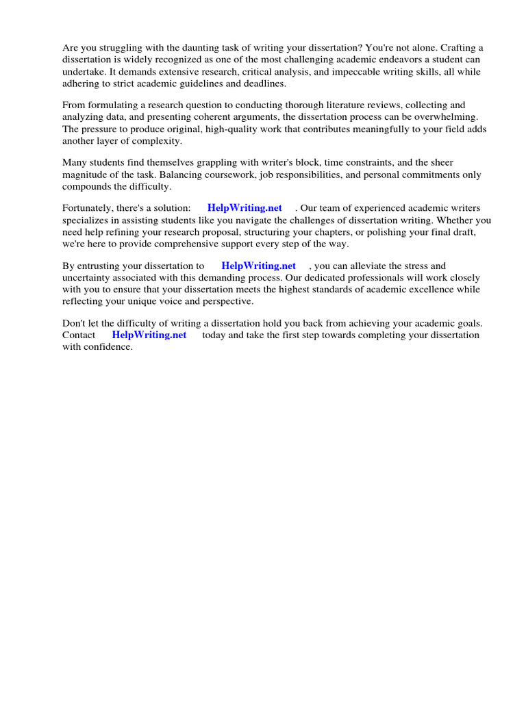Contact ⇒ HelpWriting.net ⇔ today and take the first step towards completing your dissertation
