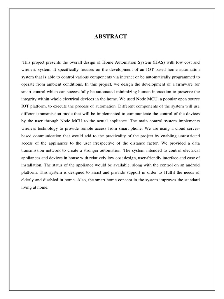 wireless system. It specifically focuses on the development of an IOT based home automation