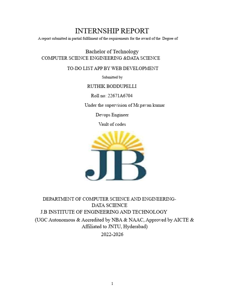 This is to certify that the “Internship report” submitted by Ruthik Boddupelli