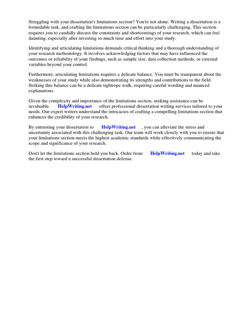 needs. Our expert writers understand the intricacies of crafting a compelling limitations section that