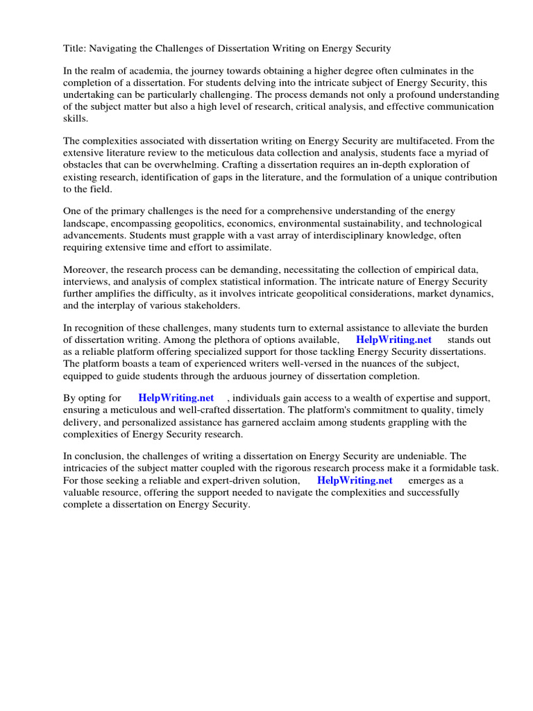Title: Navigating the Challenges of Dissertation Writing on Energy Security