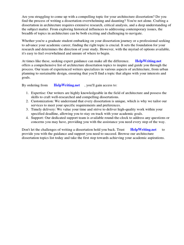 culmination of your education. The number of structures one can explore for architecture dissertation