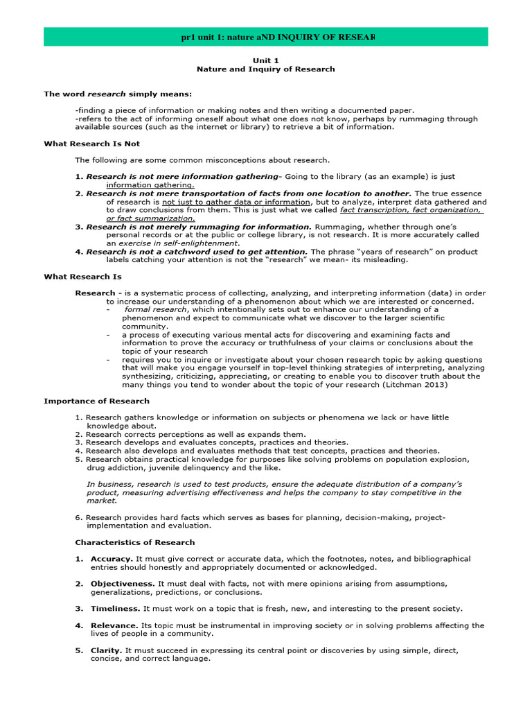 pr1 unit 1: nature aND INQUIRY OF RESEARCH