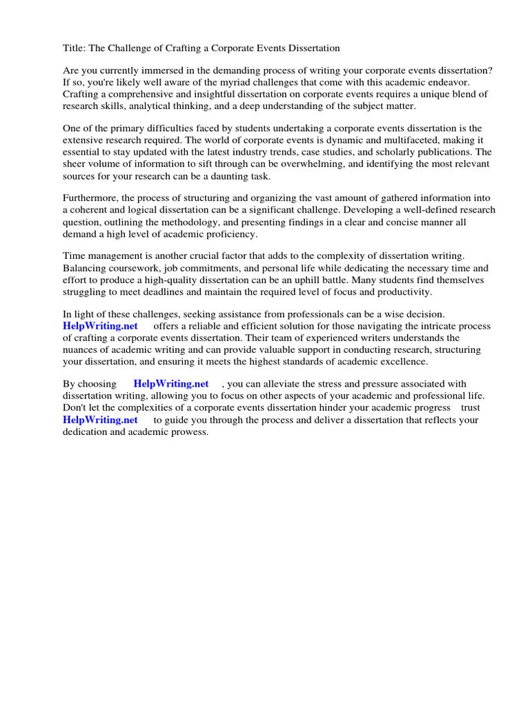 of crafting a corporate events dissertation. Their team of experienced writers understands the