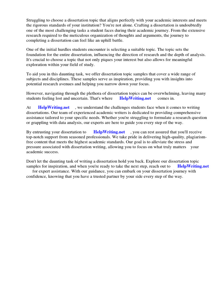 Don't let the daunting task of writing a dissertation hold you back. Explore our dissertation topic