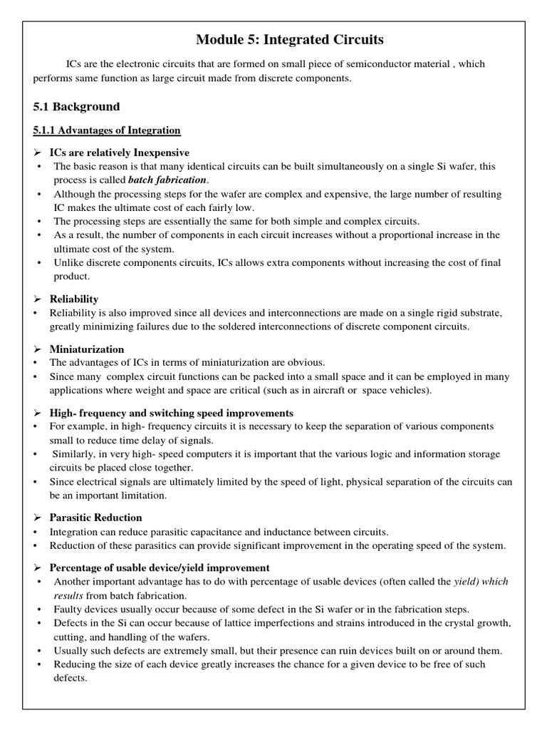 • Reliability is also improved since all devices and interconnections are made on a single rigid substrate,