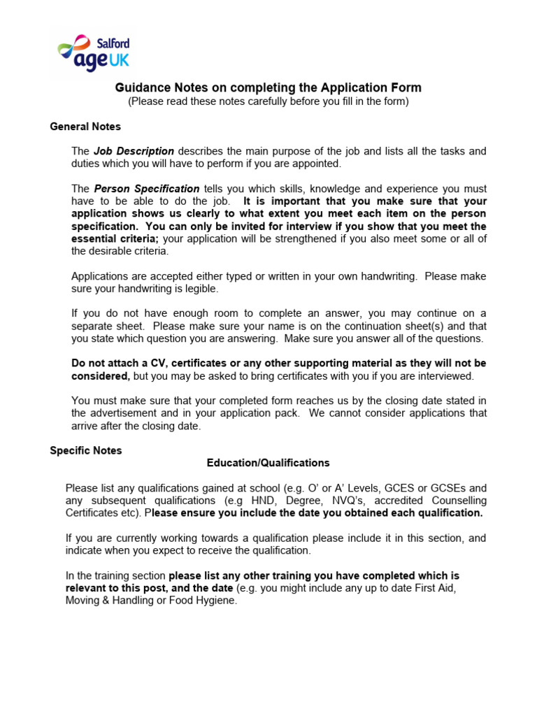 d) If you are related to any employee of AgeUK Salford, or to a member of our