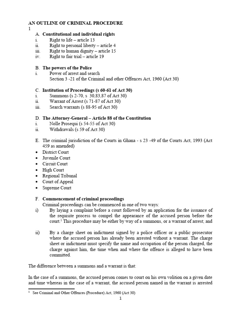 AN OUTLINE OF CRIMINAL PROCEDURE