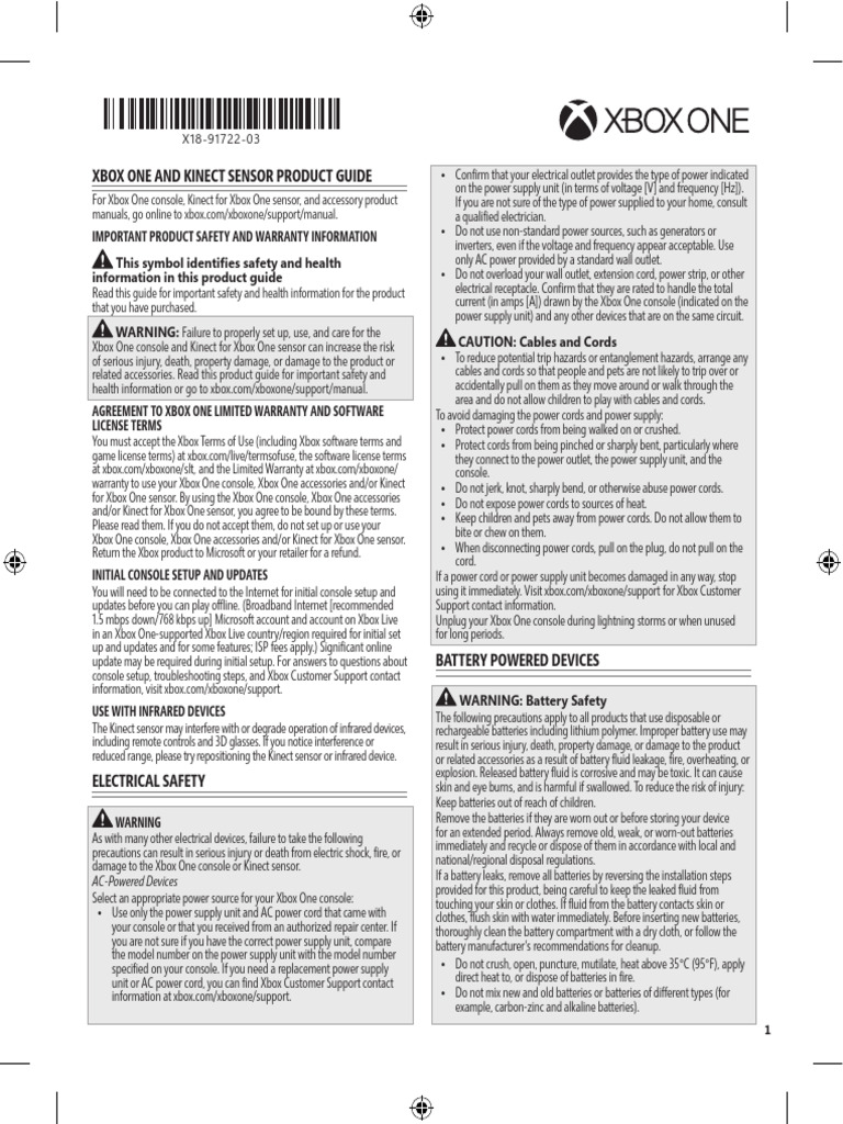 SÉCURIІTÉ ET À LA GARANTIІE DU PRODUIІT xbox.com/xboxone/support.