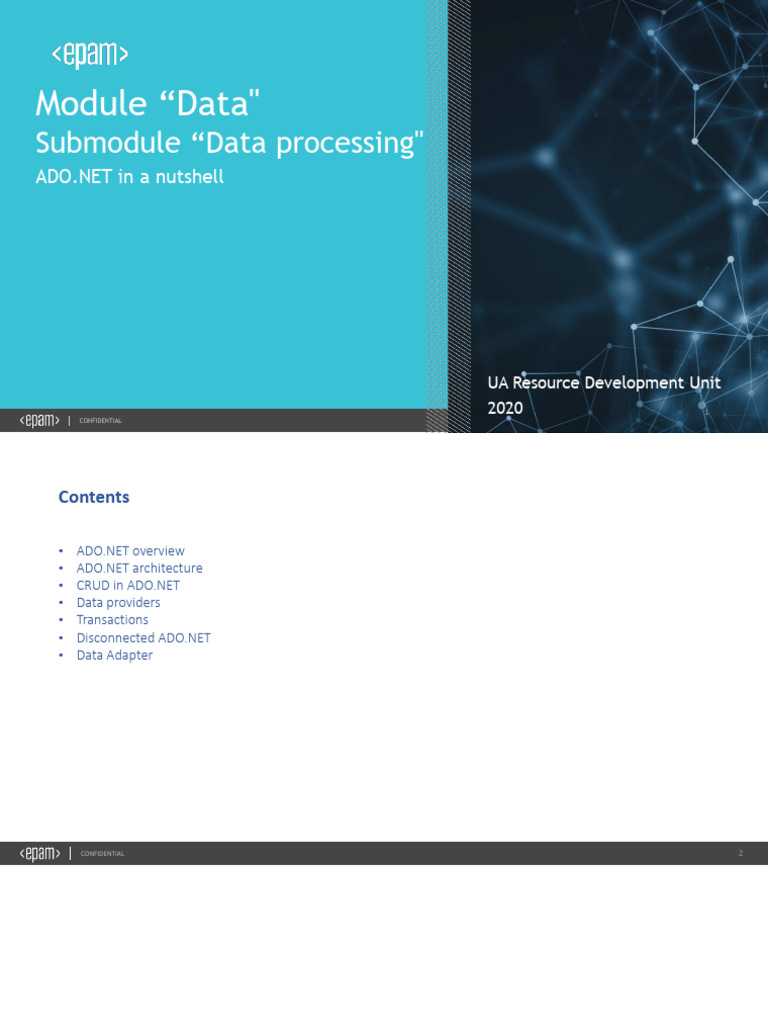 • Update – updates any changes made to the DataSet or DataTable back to the data source