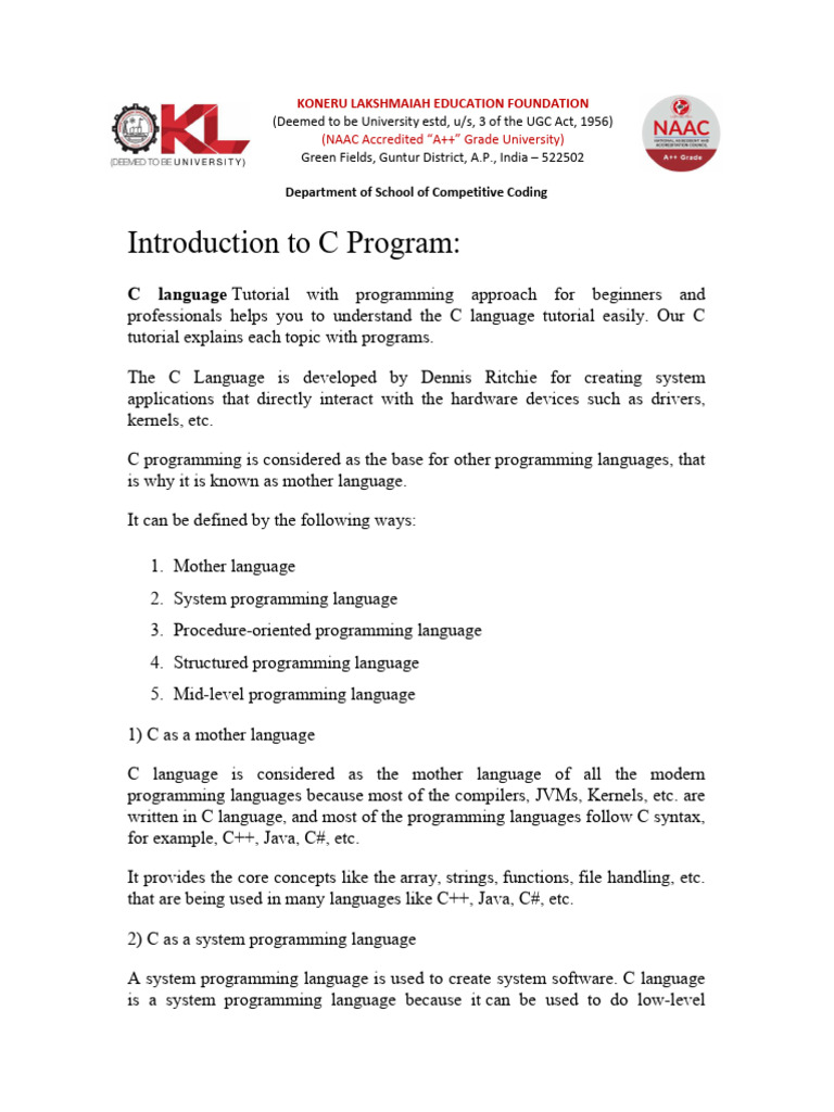 It provides the core concepts like the array, strings, functions, file handling, etc.