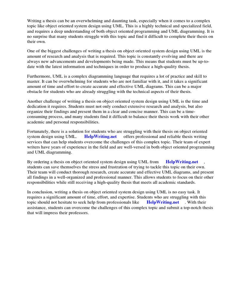 By ordering a thesis on object oriented system design using UML from ⇒ HelpWriting.net ⇔,