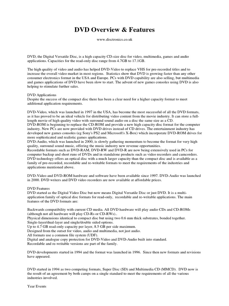 Please note that the descriptions below represent brief summaries of the DVD specifications which can be