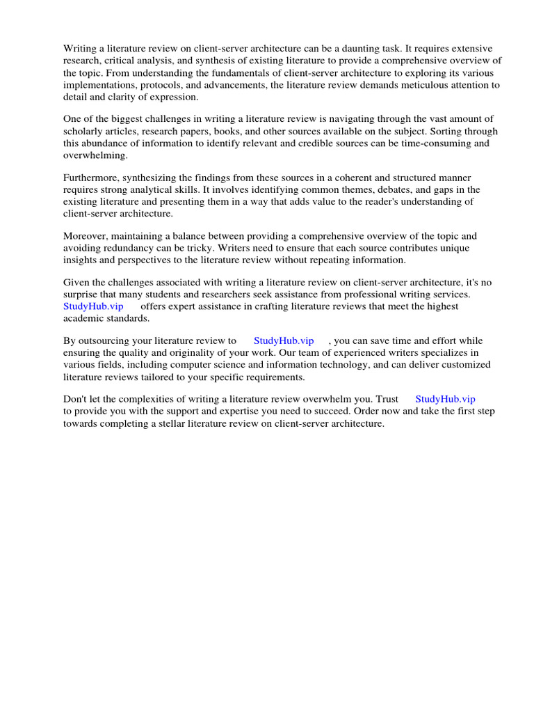 Given the challenges associated with writing a literature review on client-server architecture, it's no