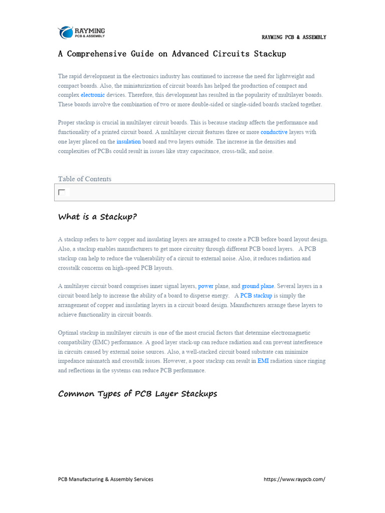 Proper stackup is crucial in multilayer circuit boards. This is because stackup affects the performance and
