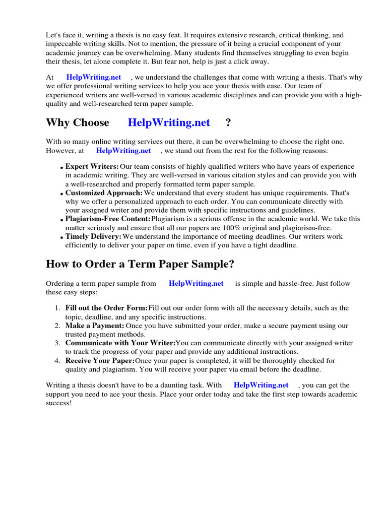 Ordering a term paper sample from ⇒ HelpWriting.net ⇔ is simple and hassle-free. Just follow