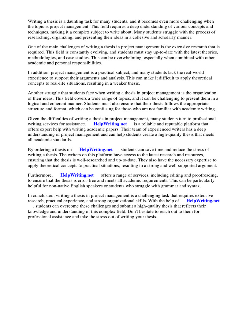 In conclusion, writing a thesis in project management is a challenging task that requires extensive