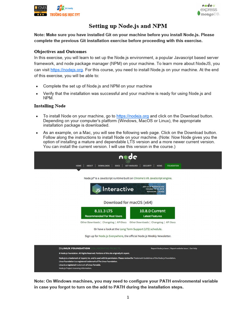 can visit https://nodejs.org. For this course, you need to install Node.js on your machine. At the end