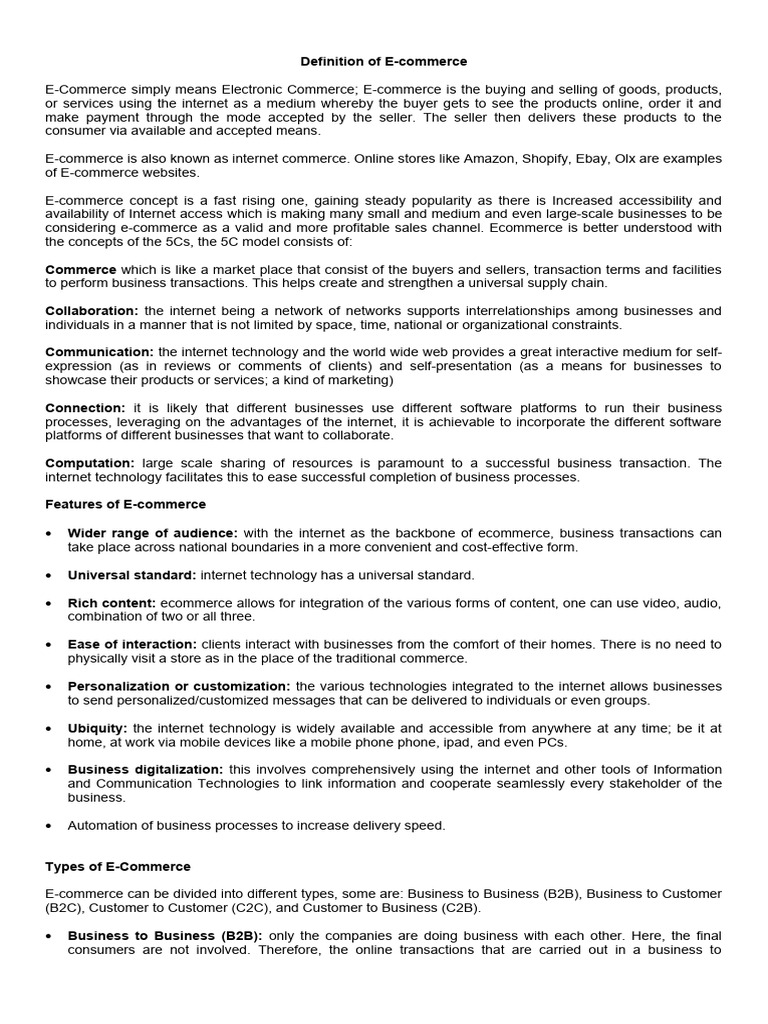 E-Commerce enables the buyer and seller to be in direct contact with no intermediary. This gives room for