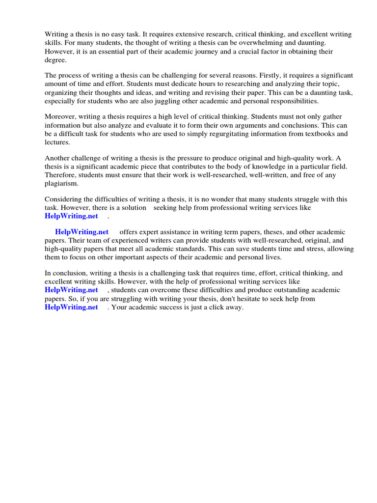 The process of writing a thesis can be challenging for several reasons. Firstly, it requires a significant