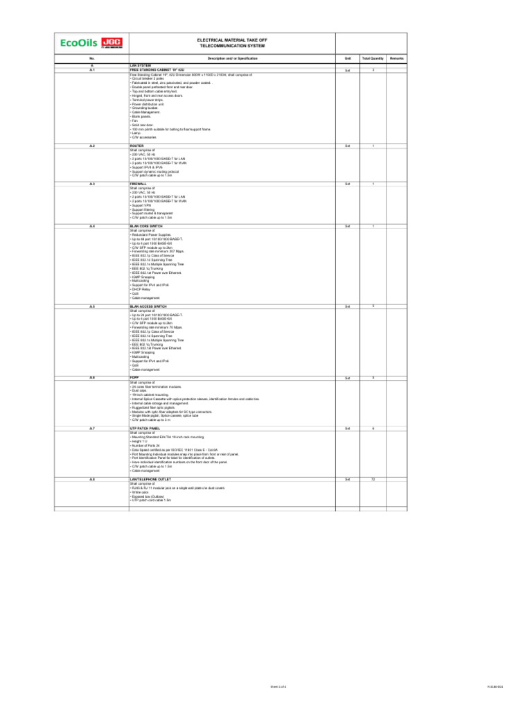 No. Description and/ or Specification Unit Total Quantity Remarks