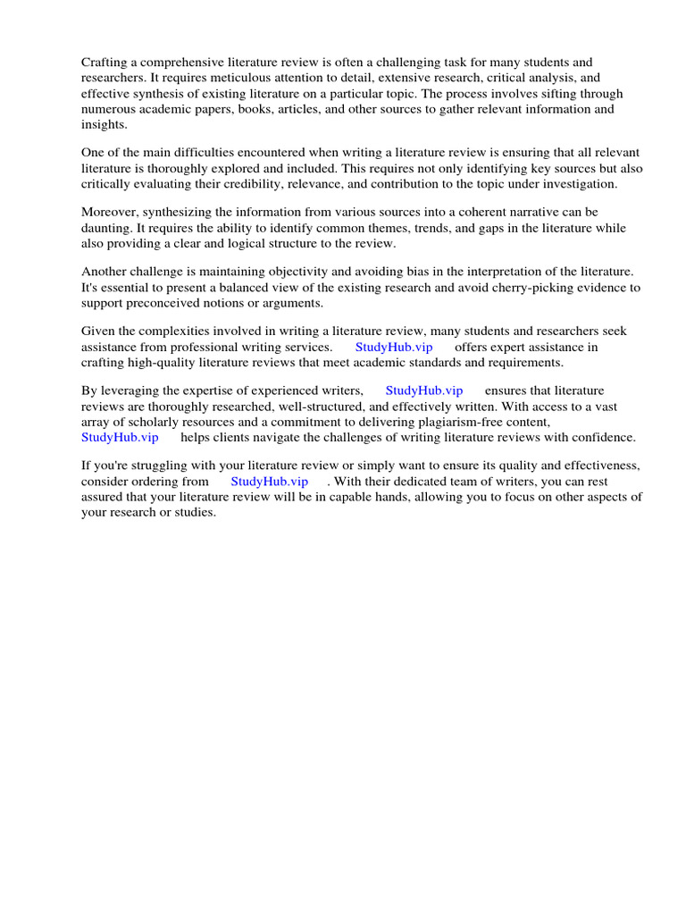 assured that your literature review will be in capable hands, allowing you to focus on other aspects of