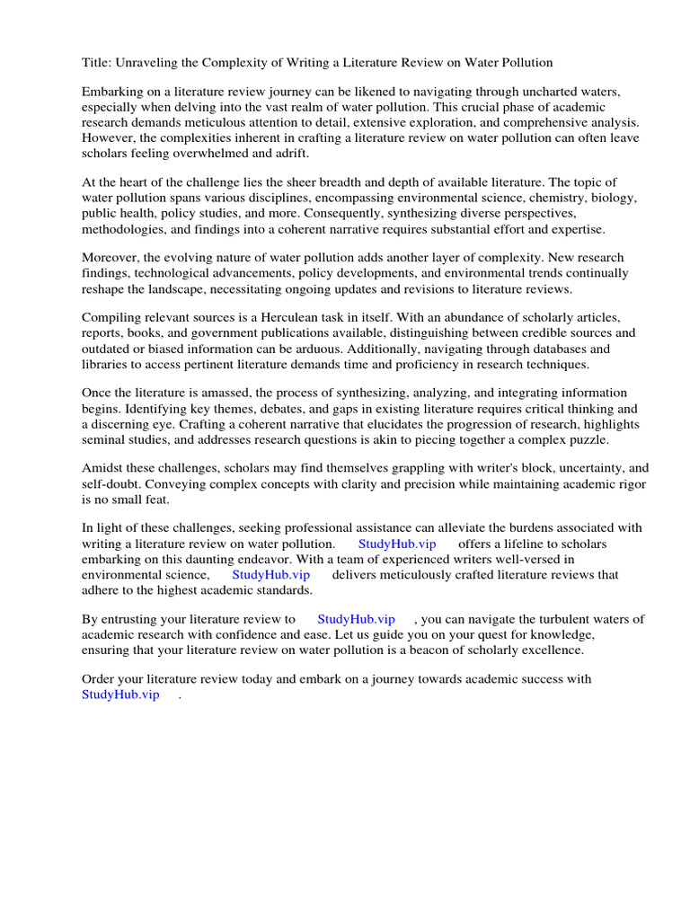 writing a literature review on water pollution. ⇒ StudyHub.vip ⇔ offers a lifeline to scholars