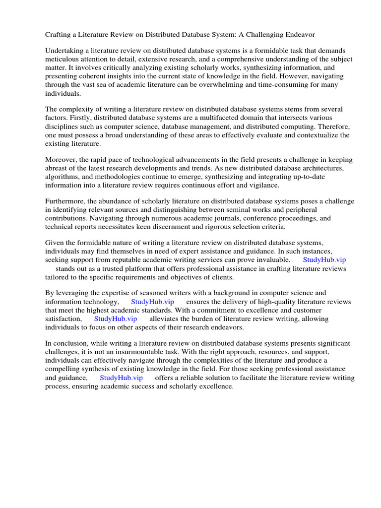 Undertaking a literature review on distributed database systems is a formidable task that demands