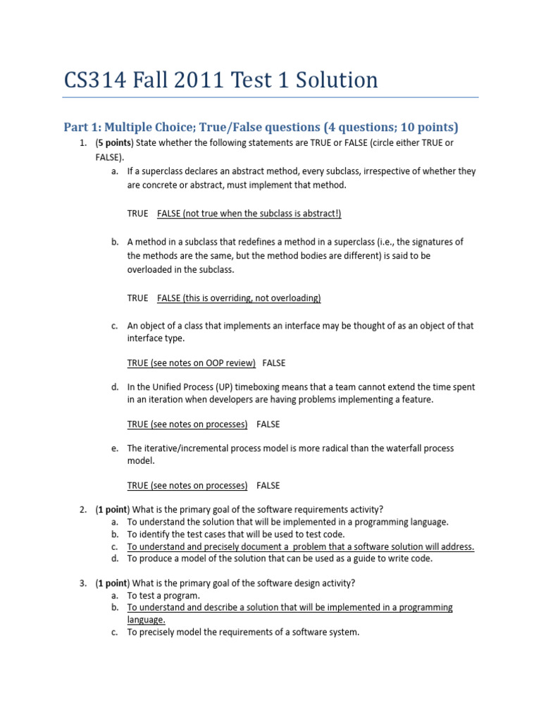 Part 1: Multiple Choice; True/False questions (4 questions; 10 points)