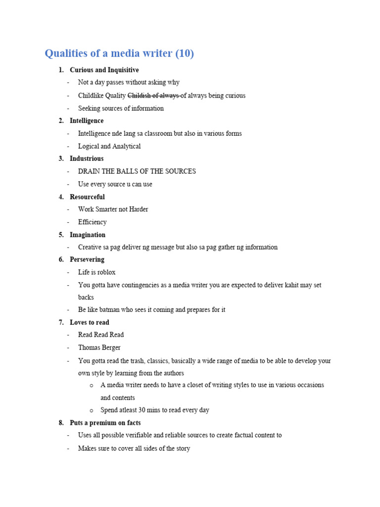 - A media writer must be able to gather their data reliably through the 3 ways of gathering data:
