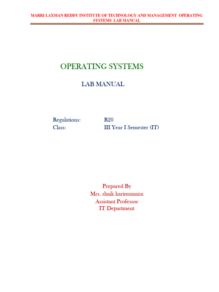 MARRI LAXMAN REDDY INSTITUTE OF TECHNOLOGY AND MANAGEMENT OPERATING