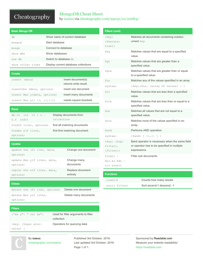 MongoDB Cheat Sheet
