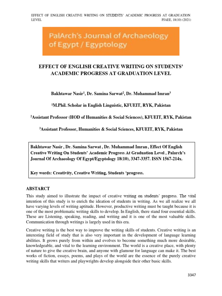 Creative Writing On Students’ Academic Progress At Graduation Level , Palarch’s