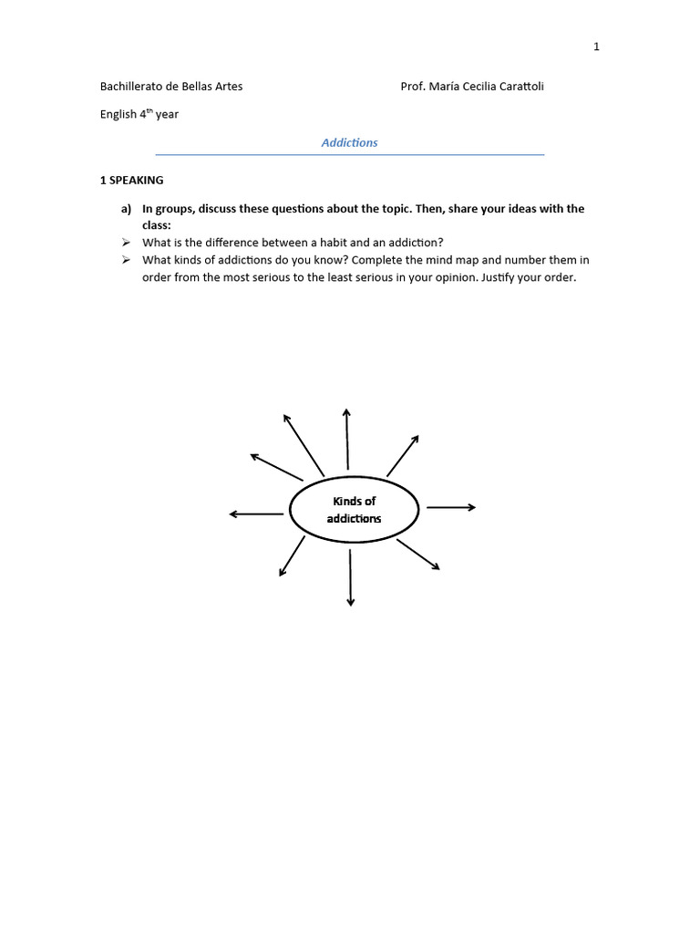 What kinds of addictions do you know? Complete the mind map and number them in