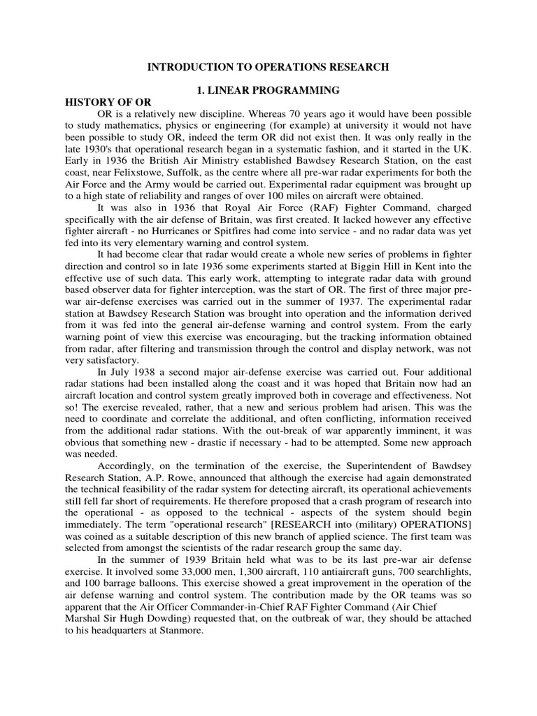been possible to study OR, indeed the term OR did not exist then. It was only really in the