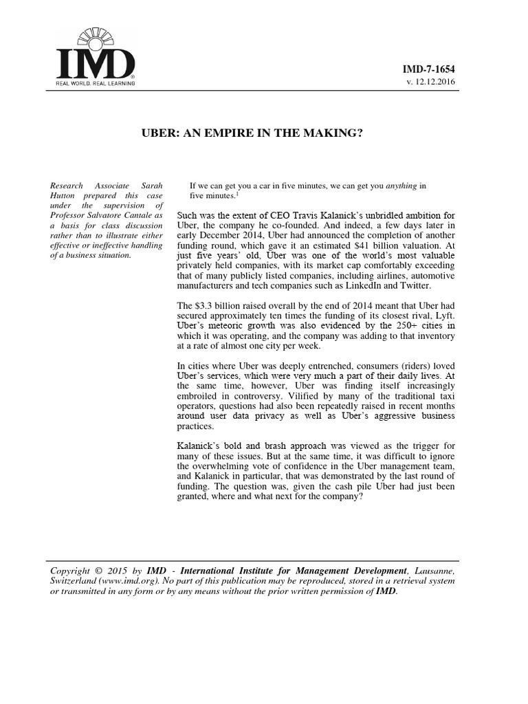 of a business situation. just five years’ old, Uber was one of the world’s most valuable