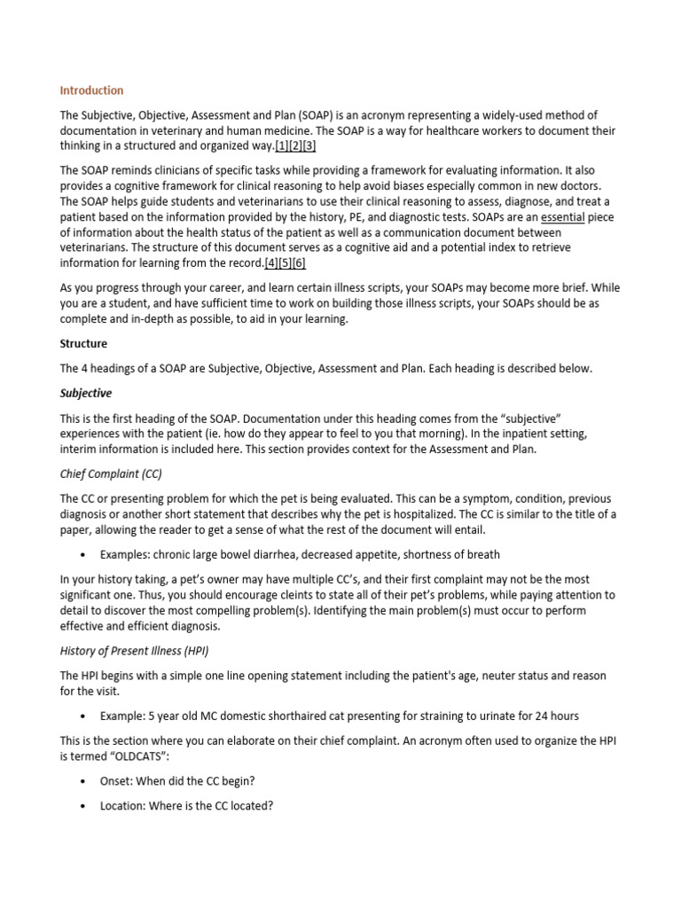 The SOAP helps guide students and veterinarians to use their clinical reasoning to assess, diagnose, and treat a