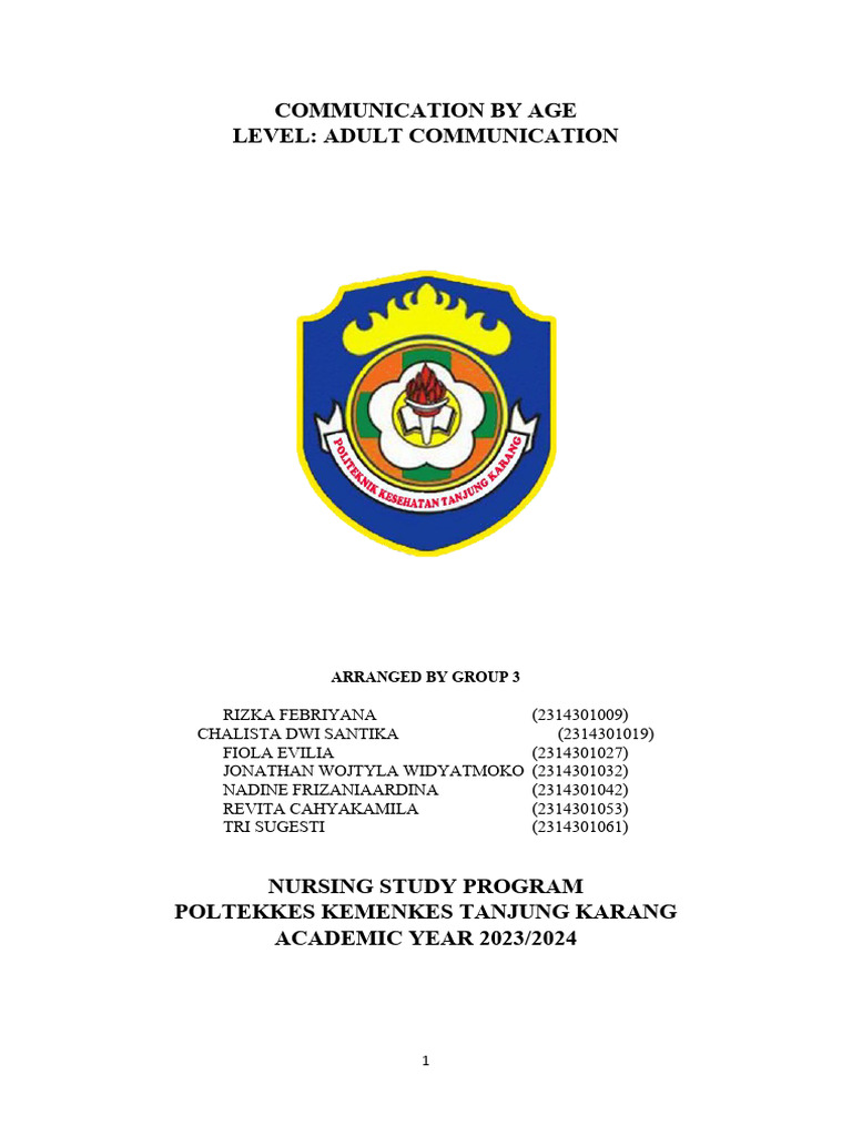 a paper entitled " Communication By Age Level: Adult Communication”. The purpose of this