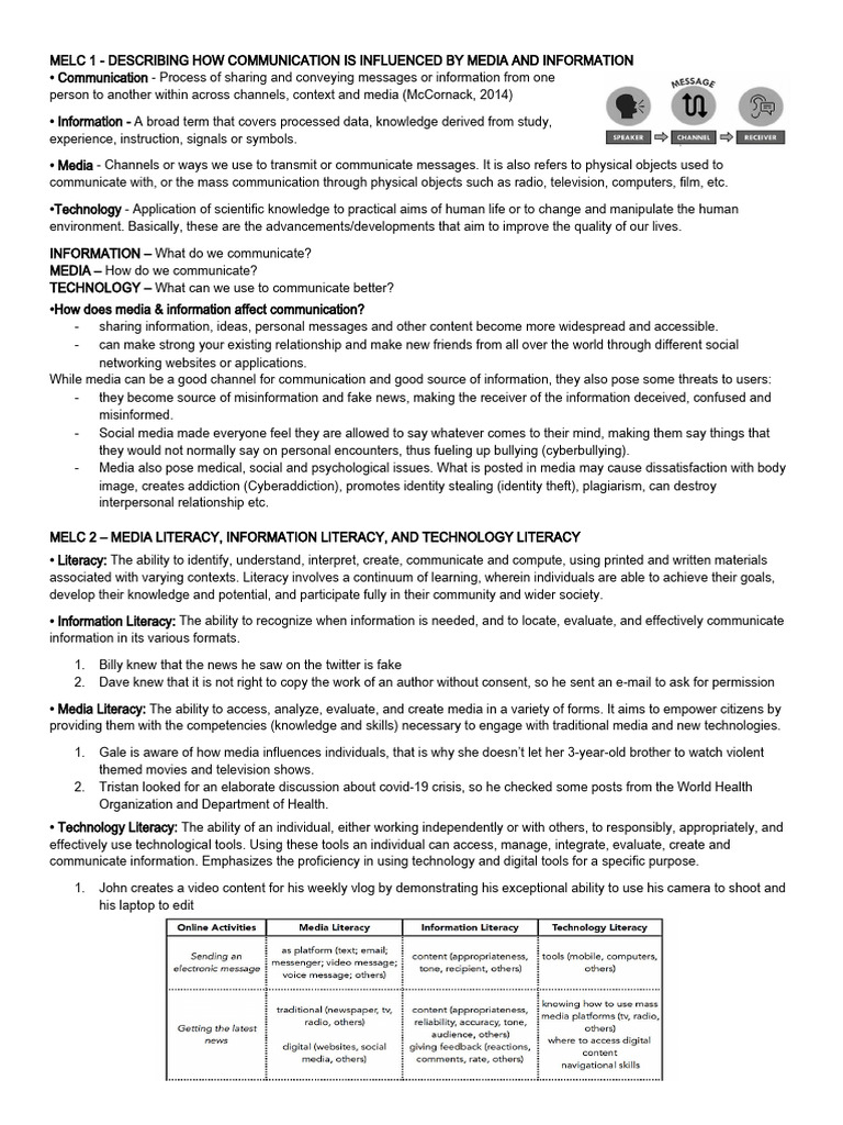 MELC 2 – MEDIA LITERACY, INFORMATION LITERACY, AND TECHNOLOGY LITERACY