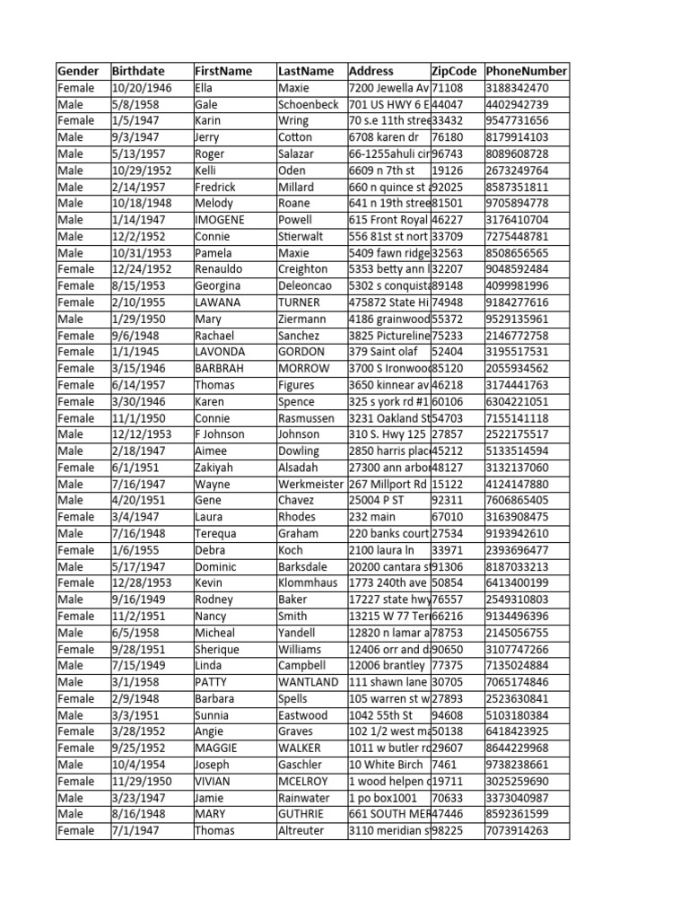 Female 1/1/1945 LAVONDA GORDON 379 Saint olaf 52404 3195517531
